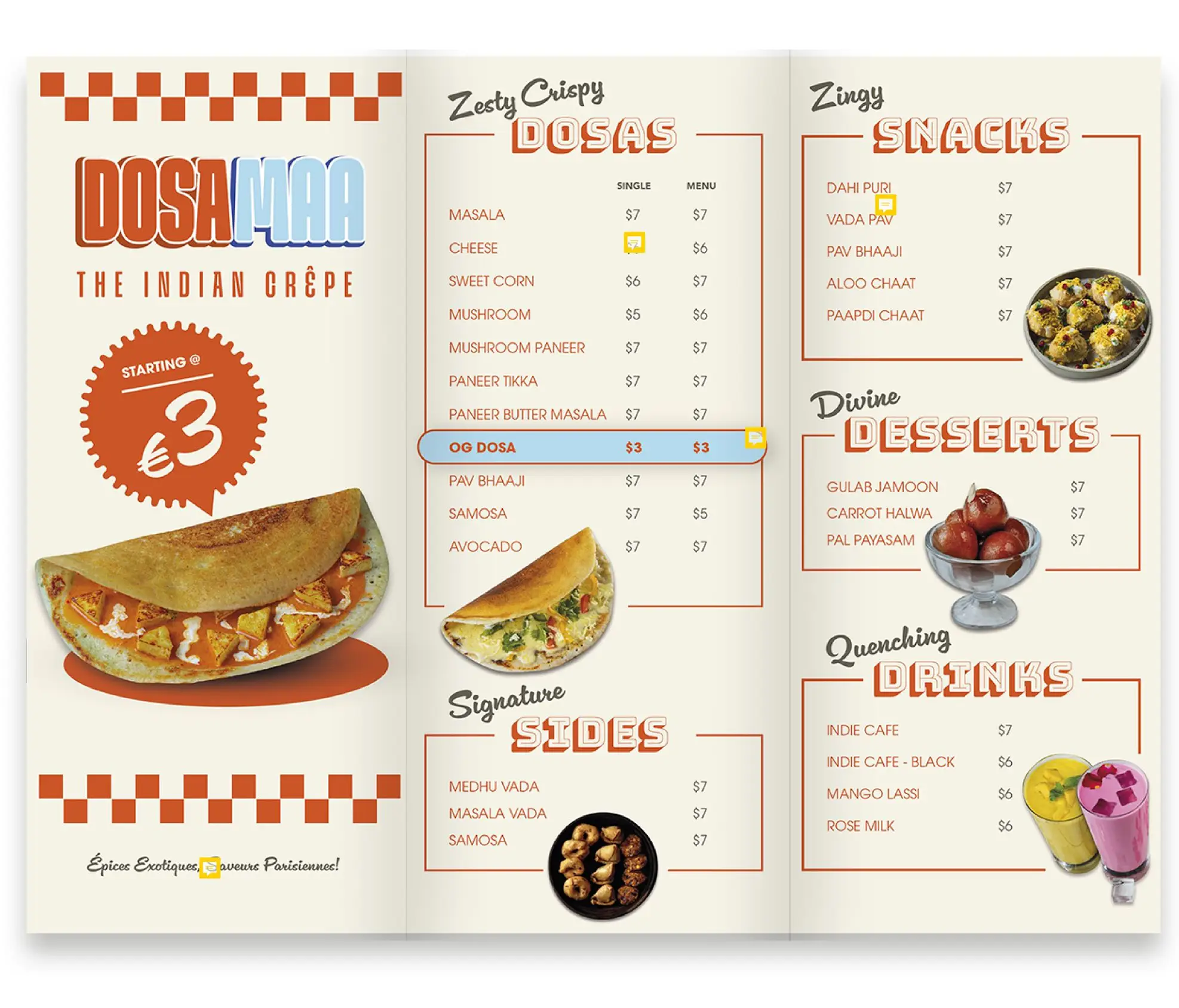 Dosama offers a fusion of South Indian flavors and French cuisine. Since its inception, Dosama has focused on preserving dosa authenticity while innovating its menu. With an emphasis on quality and memorable experiences, Dosama invites individuals to be part of its mission to redefine Indian cuisine in France.